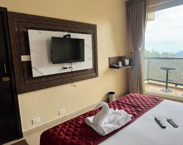 Enjoy well-designed non-AC rooms featuring Sanitized Bathrooms, comfortable bedding, and private balconies overlooking the valley. With space for up to 3 guests, our rooms offer a peaceful and homely stay surrounded by nature.
