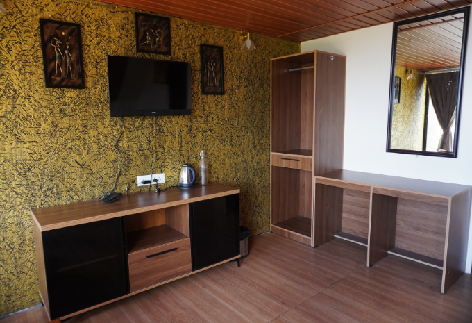 The Comfort Room offers a balanced blend of space and relaxation. Thoughtfully designed interiors and a peaceful balcony view create the perfect environment for a refreshing stay. Ideal for couples and small families.