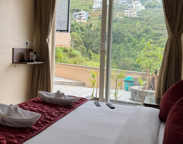Enjoy well-designed non-AC rooms featuring Sanitized Bathrooms, comfortable bedding, and private balconies overlooking the valley. With space for up to 3 guests, our rooms offer a peaceful and homely stay surrounded by nature.